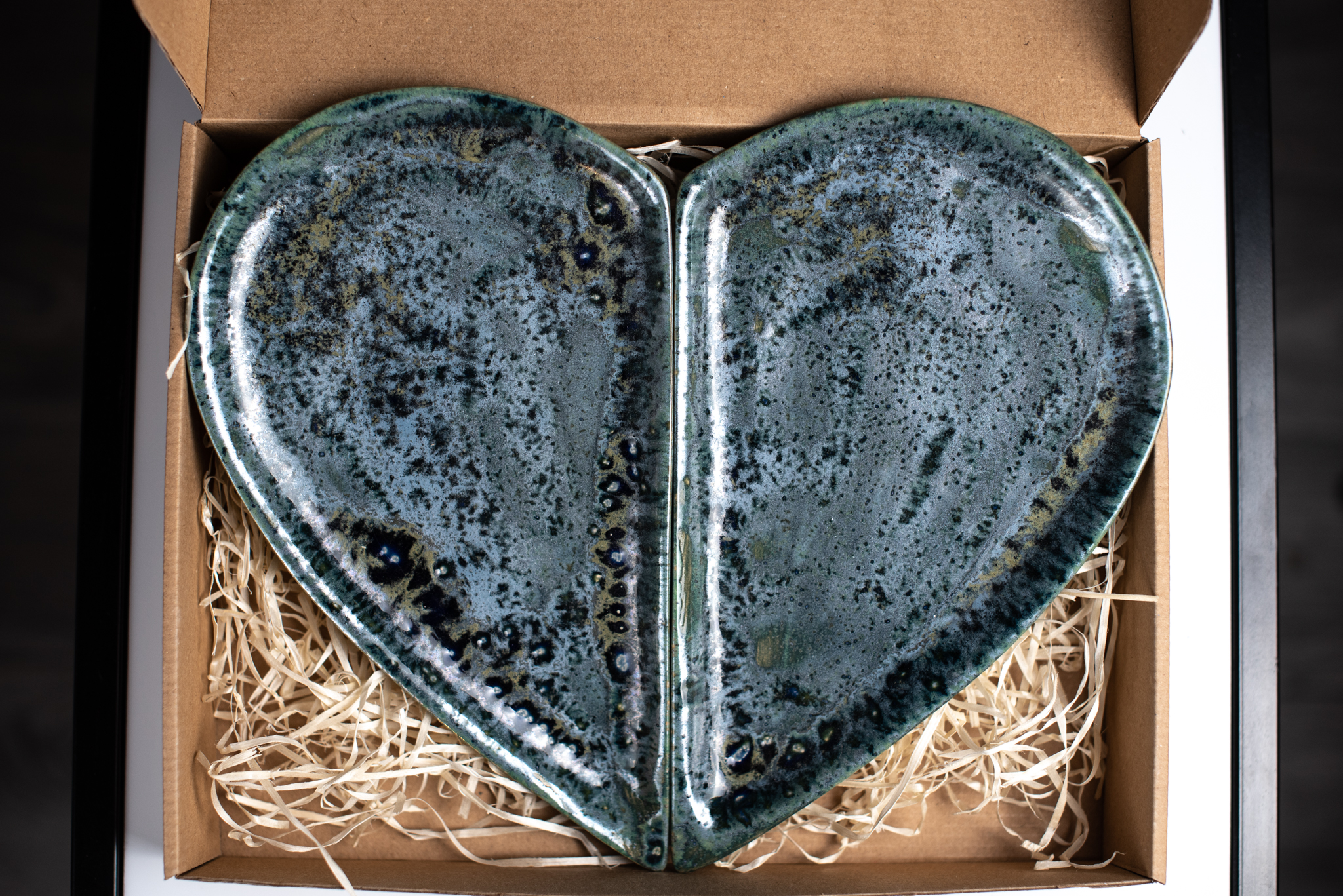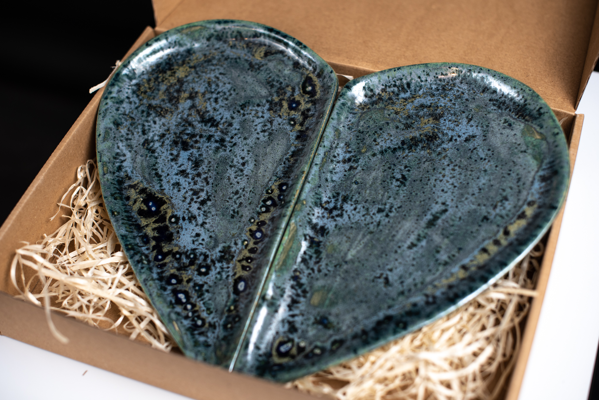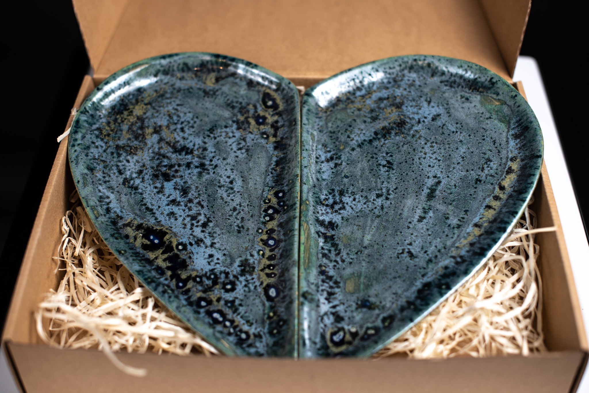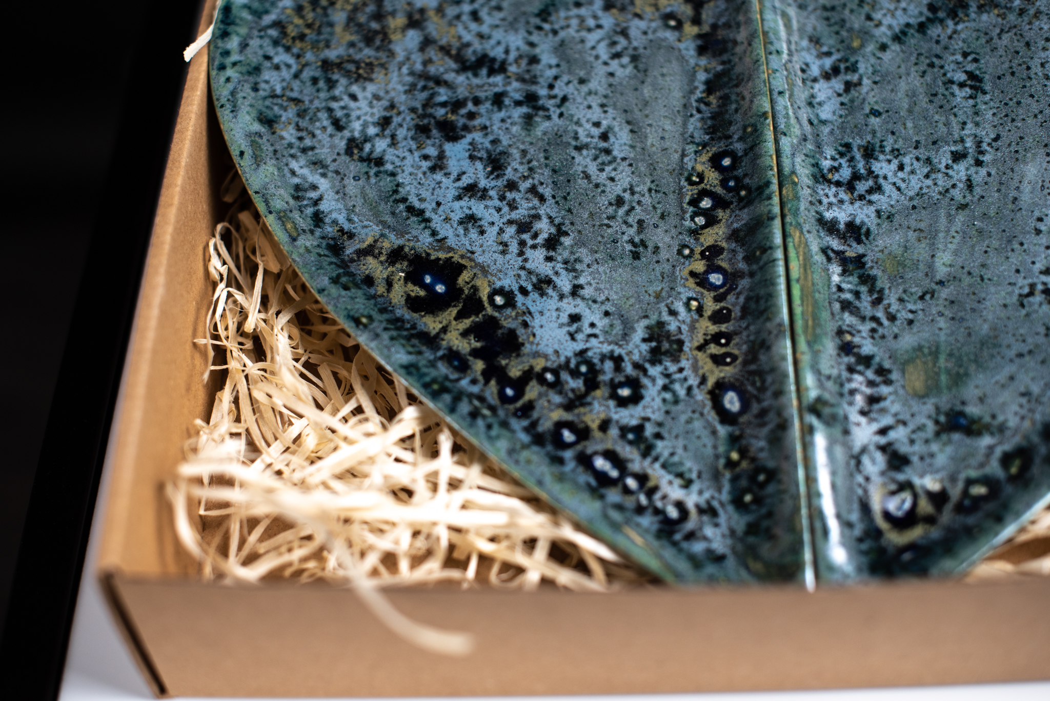 Materiale: Vitrus alb, decorat cu glazură albastră cu efect.