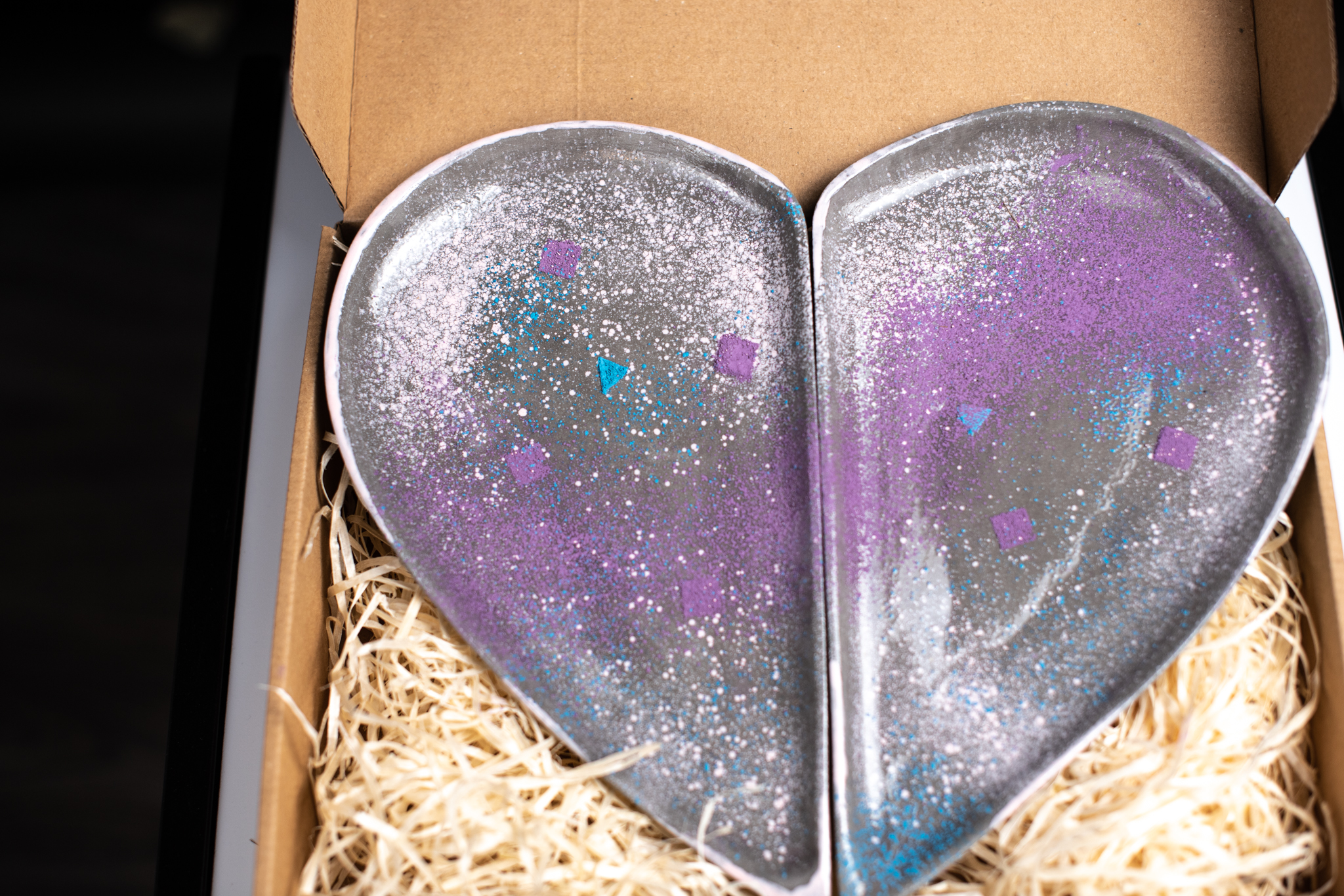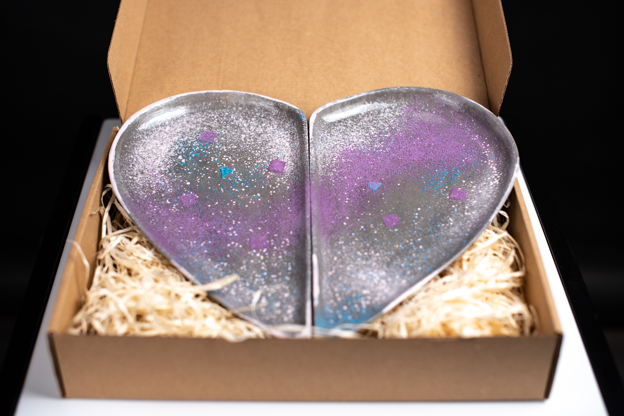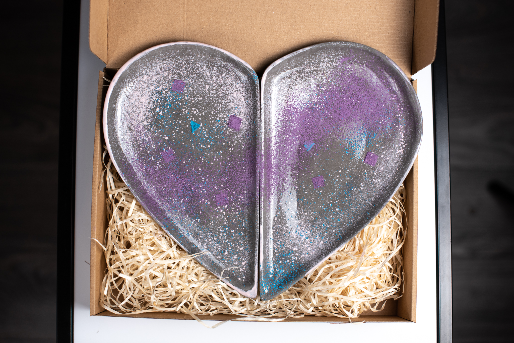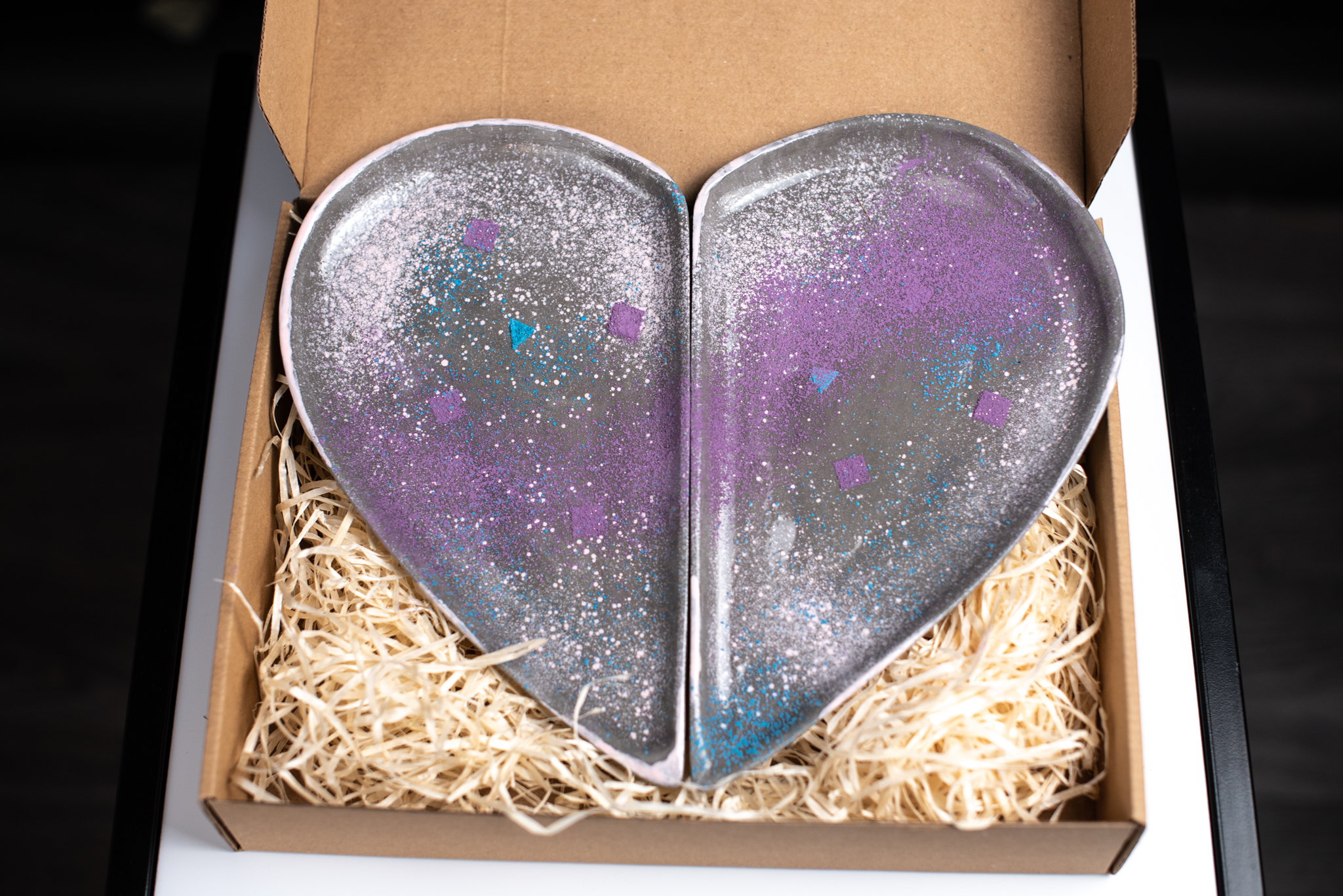 Platou decorativ în formă de inimă din două piese.